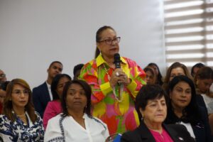 La representante de la provincia Hermanas Mirabal, Lissette Nicasio, tomó la palabra en nombre de sus homólogas durante el encuentro, expresando su apoyo rotundo a la funcionaria.